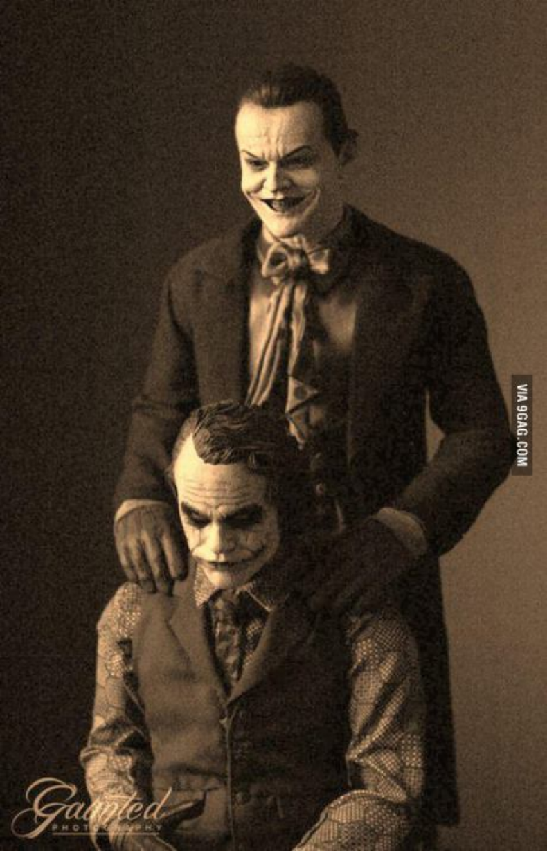 За съжаление тази снимка на Джак Никълсън с Хийт Леджър - двамата, влезли в образа си на Жокера - не съществува.