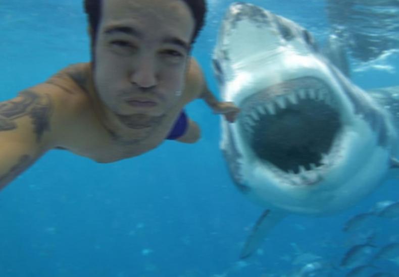 Ето ти идея какво можеш да направиш, докато разпускаш в басейна. Защо не да предизвикаш медийното внимание... с акула зад гърба си?