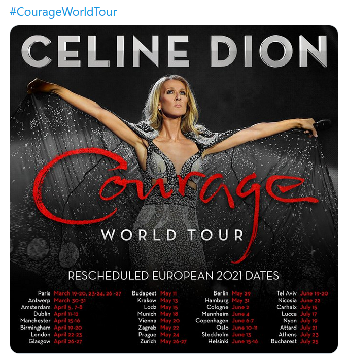 През септември 2019-а певицата започна световно турне в подкрепа на новия си албум "Courage". Европейската ѝ обиколка трябваше да започне в Прага на 21 май 2020-а като по план тя трябваше да изнесе над 30 концерта, сред които в Амстердам, Антверпен, Берлин, Будапеща, Виена, Загреб, Кьолн, Краков, Мюнхен, Париж, Цюрих, но заради пандемията шоутата бяха отменени. Изпълнителката ще завърши европейската част от световната си обиколка на 25 юли следващата година с шоу в Букурещ. Северноамериканската част от турнето пък ще бъде възобновена на 16 август в Уинипег, Канада и ще завърши на 24 септември 2021-ва в Питсбърг, САЩ.