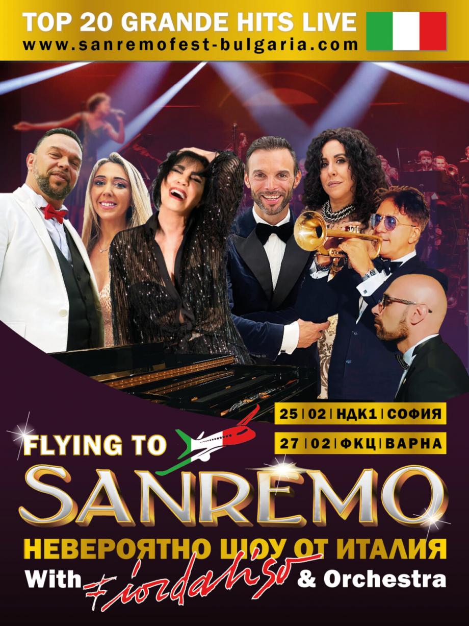 Шоуто „Flying to Sanremo” с очарованието на Dolce Vita ще ни потопи в атмосферата на оригиналния фестивал от 80-те години, с вашите любими песни, добро настроение, блясък и магията на музиката.