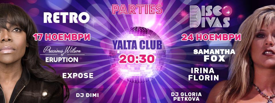 Поради изключително големия интерес към „Ретро парти“ на 17 ноември с Прешъс Уилсън и DJ Дими и „Диско Дивас“ със Саманта Фокс, Ирина Флорин и DJ Глория Петкова на 24 ноември в столичния клуб „Ялта“ в продажба са пуснати допълнителни билети за двете събития на цена от 35 лева. Дует Expose ще участва и в двете събития със своя балет и новата си програма.