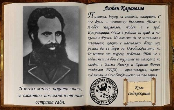 Освободителното движение през Възраждането ражда революционни дейци, имената на които днес всеки българин знае. Примери за това са Любен Каравелов, Васил Левски, Христо Ботев. През 1869 година се създава Българският революционен централен комитет, който слива двете течения на българското революционно движение - революционно-демократичното и либералното. Така се дава отговор на историческата необходимост от формиране на единен център на националната борба. В издавания от него вестник "Свобода" Любен Каравелов изобличава обществените отношения в Турция (като посочва, че те са недостоен анахронизъм за Европа) и представя турското правителство като враг на свободата и прогреса на балканските народи. Той налага идеята за революцията като радикално средство за решаване на българския национален въпрос.