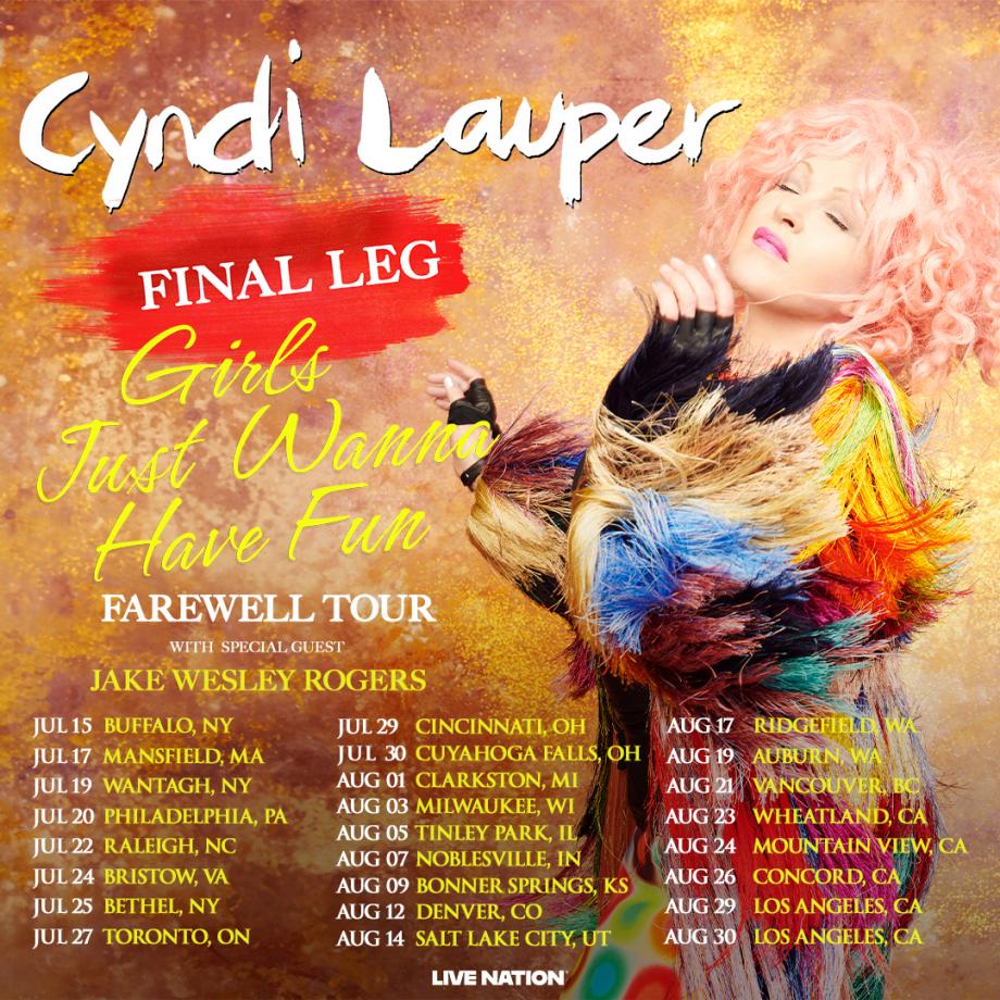 Cyndi Lauper, която през юни ще стане на 72, обяви последна серия концерти в Северна Америка, част от прощалното ѝ турне, което носи заглавието на един от най-емблематичните ѝ хитове - „Girls Just Wanna Have Fun Farewell Tour“ и стартира през октомври миналата година.